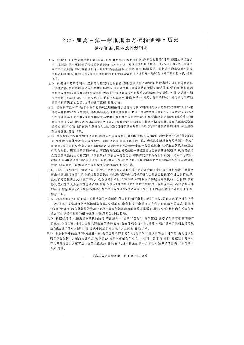 陕西省十七校2024-2025学年高三上学期11月期中联考 历史答案