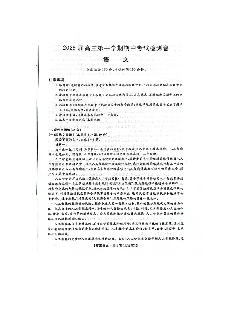 陕西省十七校2024-2025学年高三上学期11月期中联考 语文