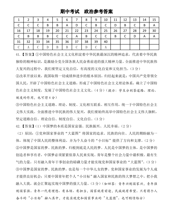 四川省南充高级中学2024-2025高一上学期期中考试 政治答案