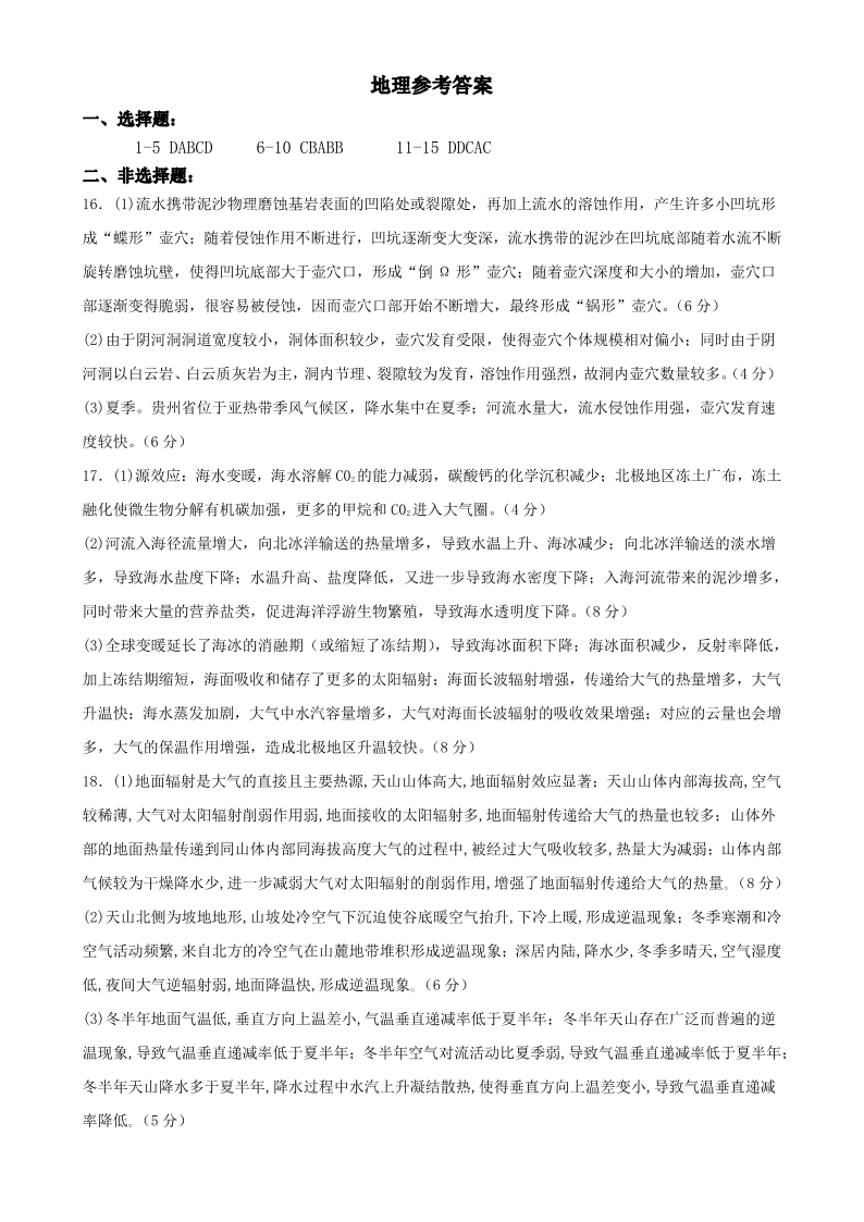 四川省南充市嘉陵一中2024-2025学年高二上学期第二次月考 地理答案