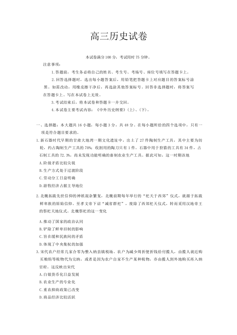 陕西省部分学校2025届高三上学期11月期中考试 历史