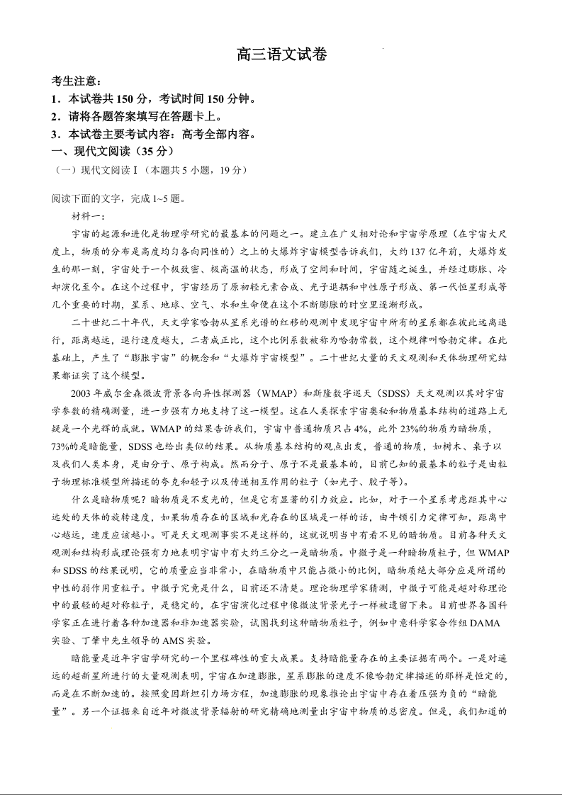 陕西省部分学校2025届高三上学期11月期中考试 语文