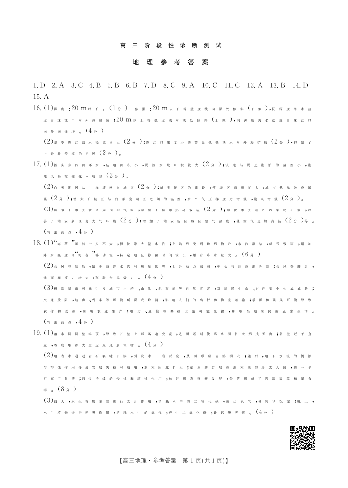 河南省部分学校2024-2025学年高三11月阶段性诊断考试 地理答案