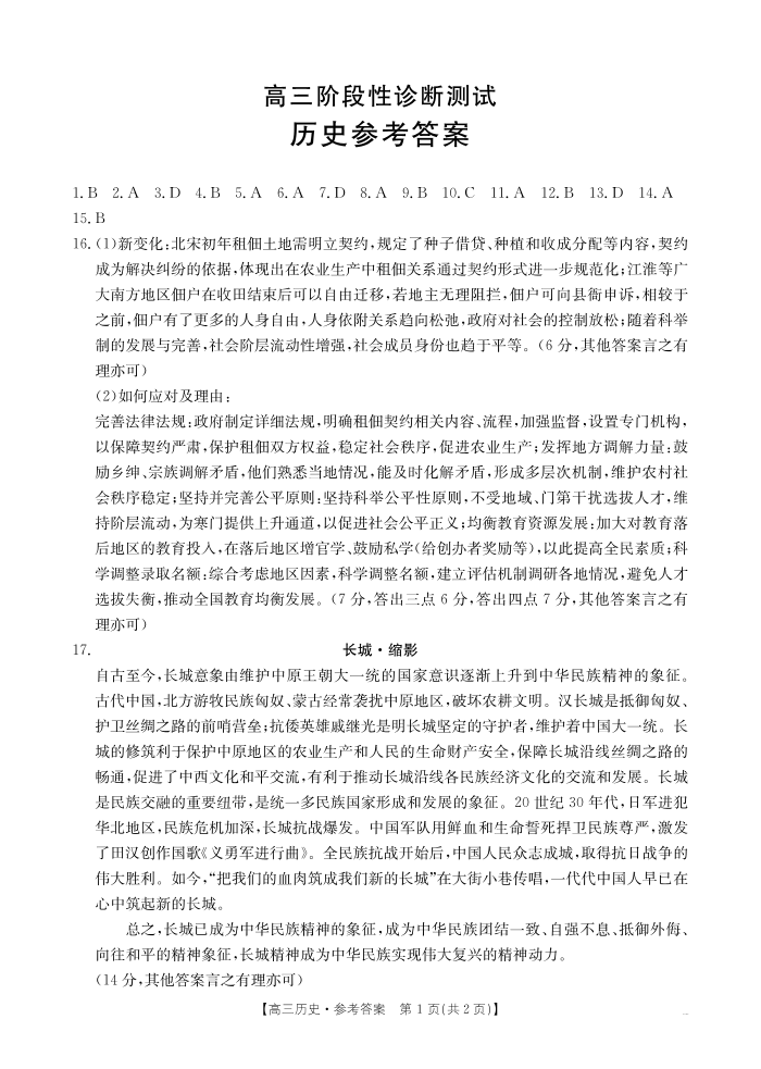 河南省部分学校2024-2025学年高三11月阶段性诊断考试 历史答案