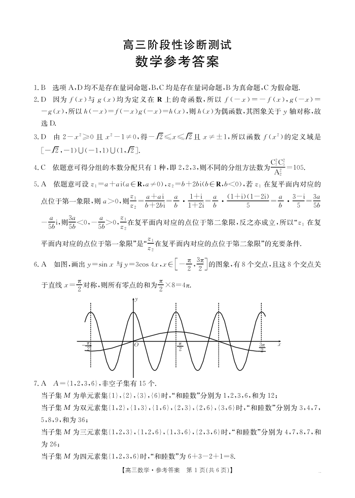 河南省部分学校2024-2025学年高三11月阶段性诊断考试 数学答案