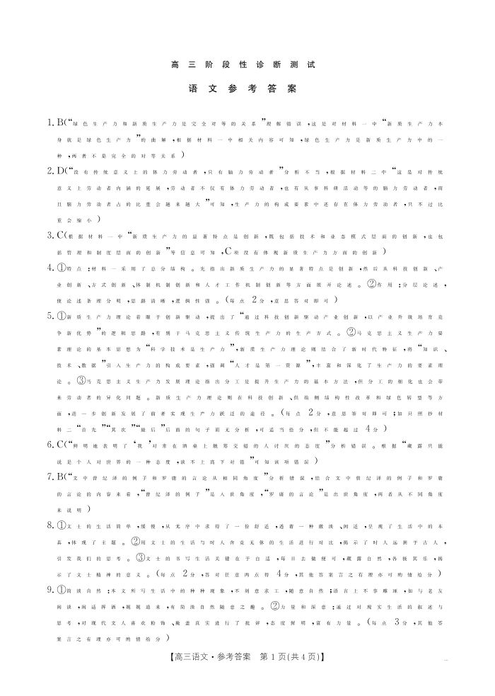 河南省部分学校2024-2025学年高三11月阶段性诊断考试 语文答案