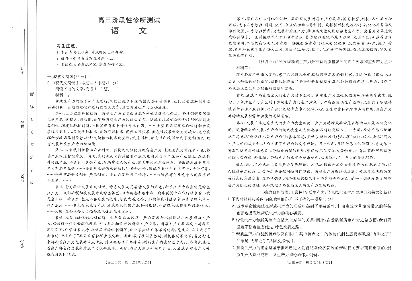 河南省部分学校2024-2025学年高三11月阶段性诊断考试 语文