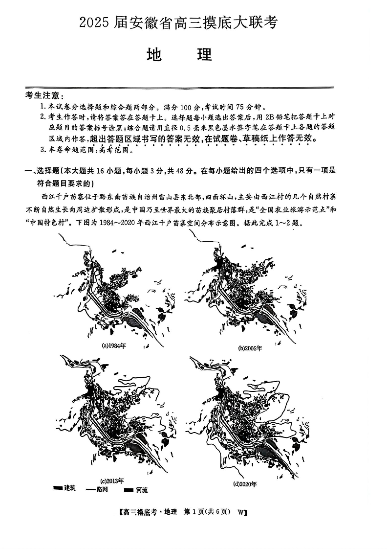 安徽皖江名校联盟2025届高三11月摸底大联考 地理