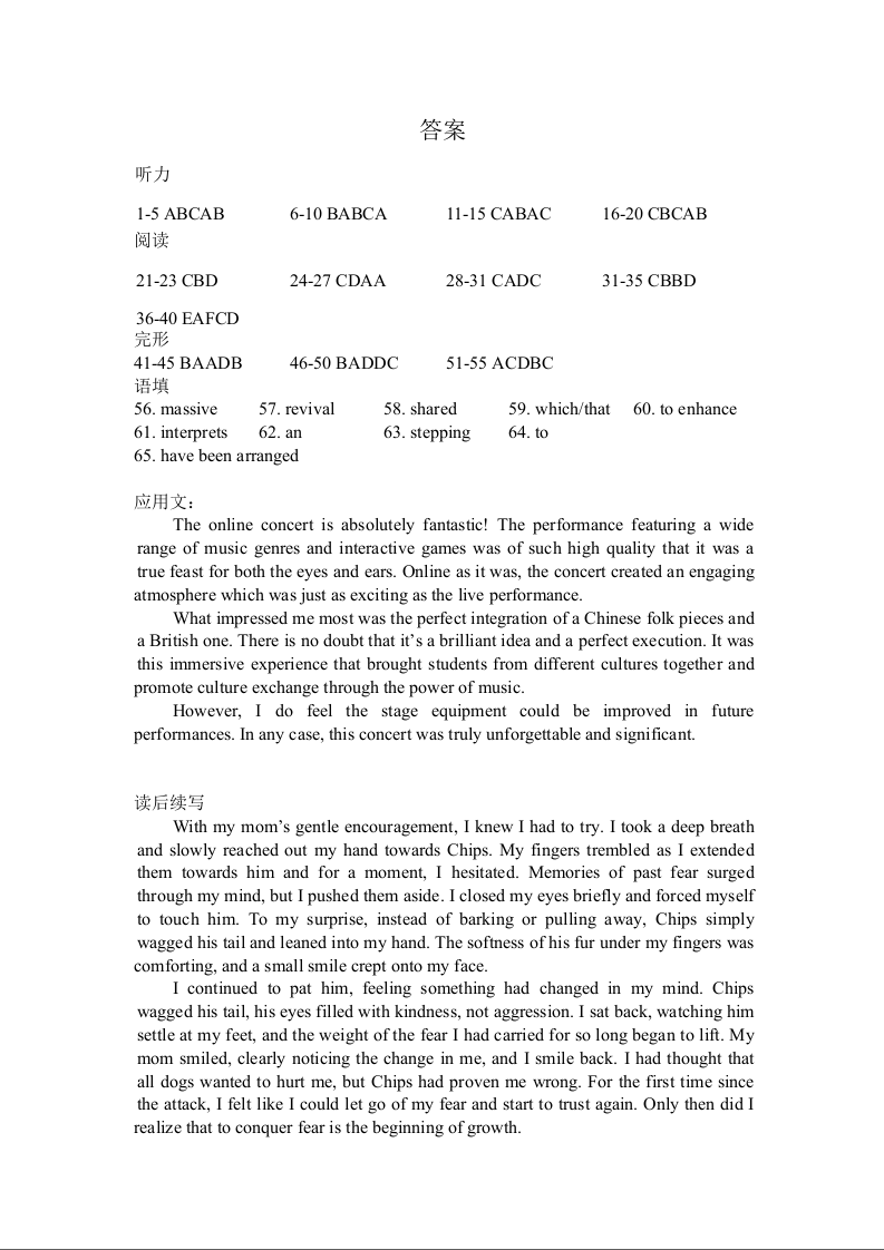 玉溪一中2024-2025学年上学期高三年级期中考试 英语答案