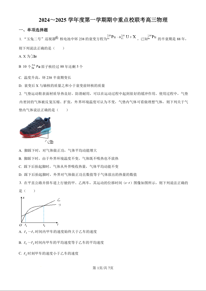 天津市五区县重点校联考2025届高三上学期11月期中考试 物理