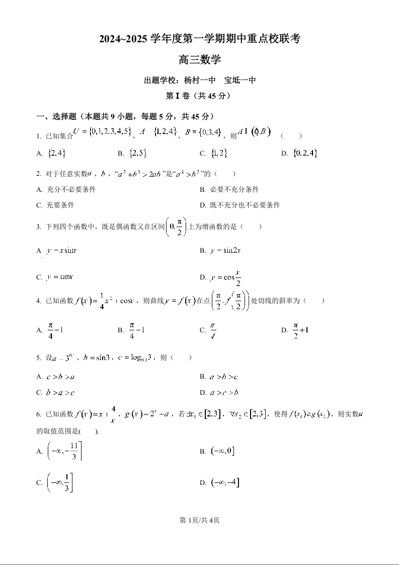 天津市五区县重点校联考2025届高三上学期11月期中考试 数学