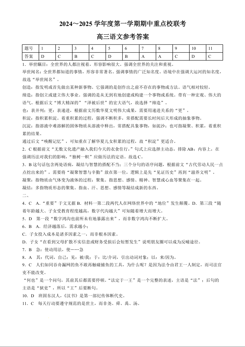 天津市五区县重点校联考2025届高三上学期11月期中考试 语文答案
