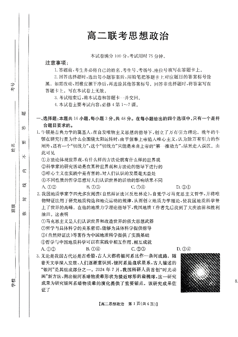 贵州省2024-2025学年度高二年级期中联考 政治