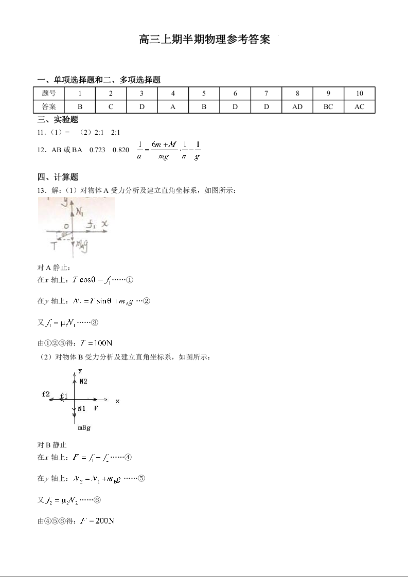 四川省成都外国语学校2025届高三上学期11月期中考试 物理答案