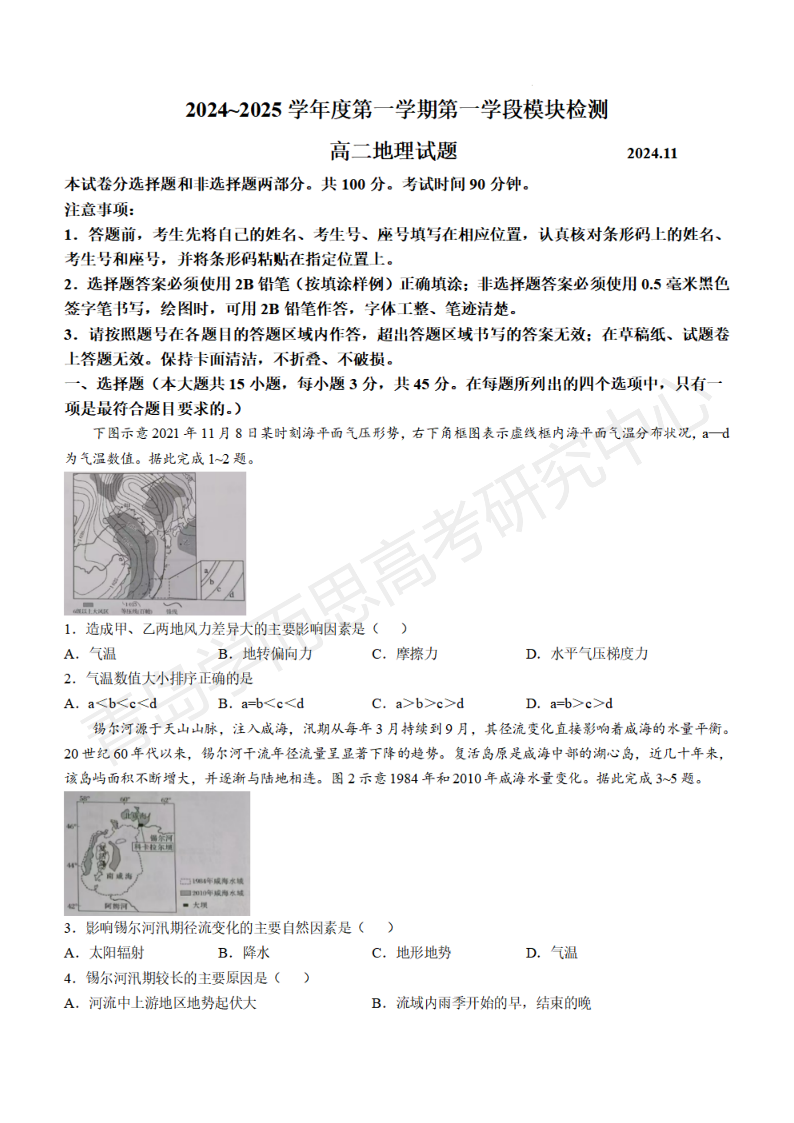 青岛市四区县(胶州、西海岸、平度、莱西)高二上期中 地理