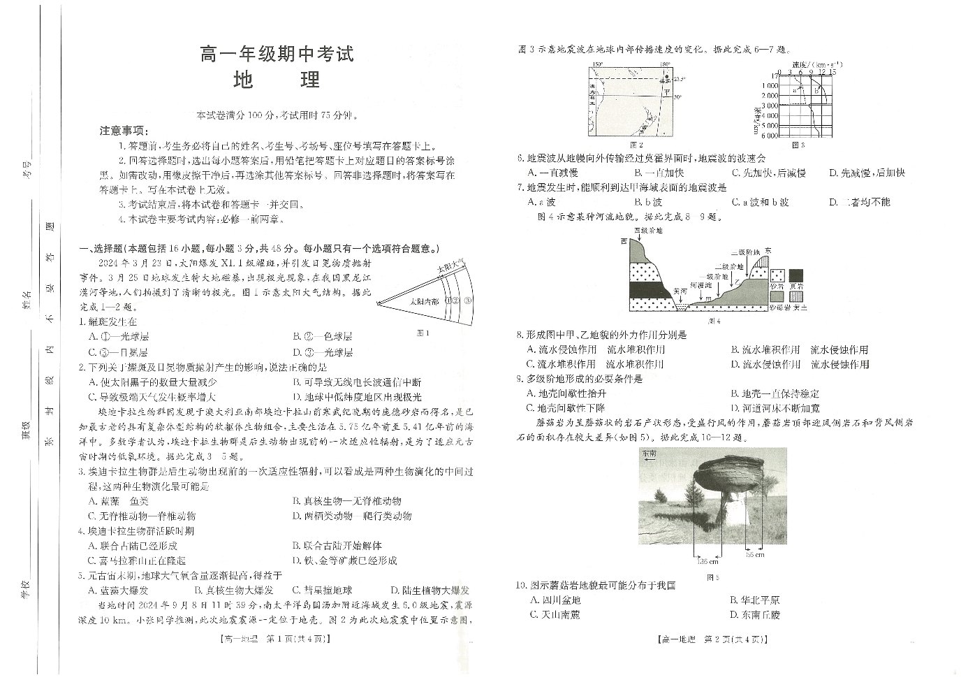 河北省唐山市2024-2025学年高一上学期期中考试 地理