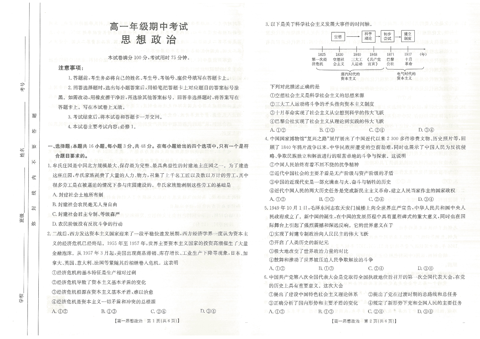 河北省唐山市2024-2025学年高一上学期期中考试 政治