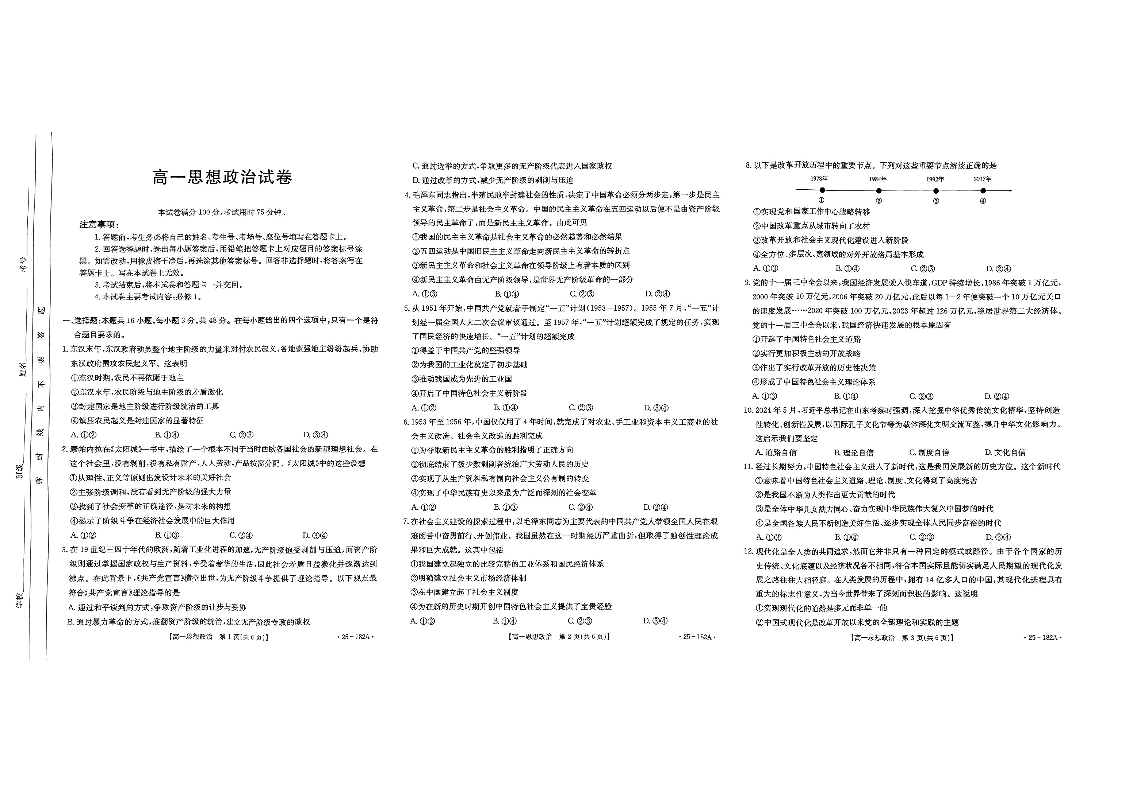 内蒙古赤峰市名校2024-2025学年高一上学期期中联考 政治