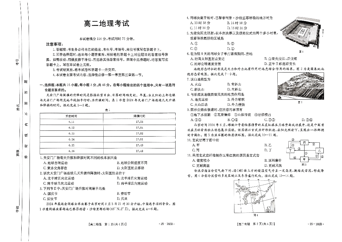 内蒙古赤峰市名校2024-2025学年高二上学期期中联考 地理