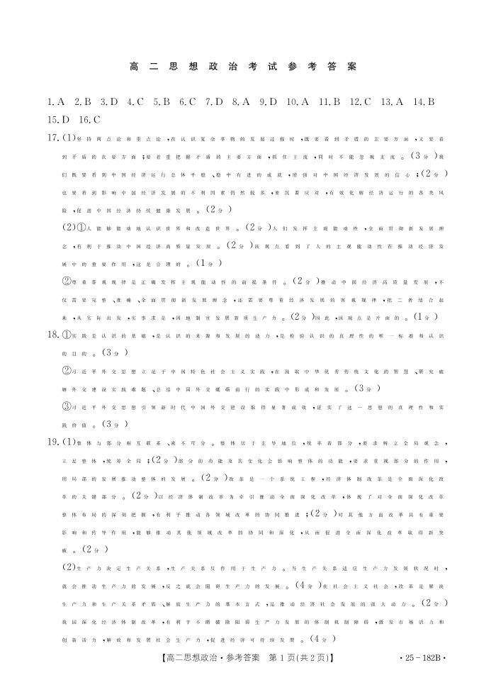 内蒙古赤峰市名校2024-2025学年高二上学期期中联考 政治答案