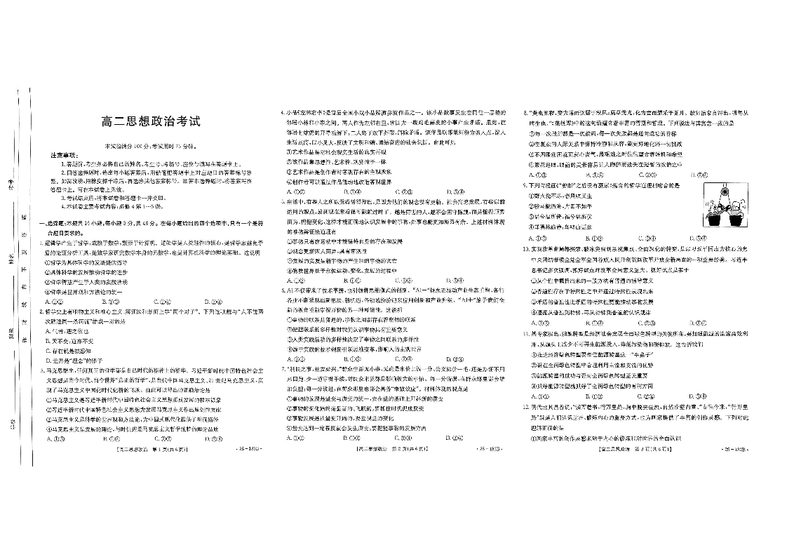 内蒙古赤峰市名校2024-2025学年高二上学期期中联考 政治