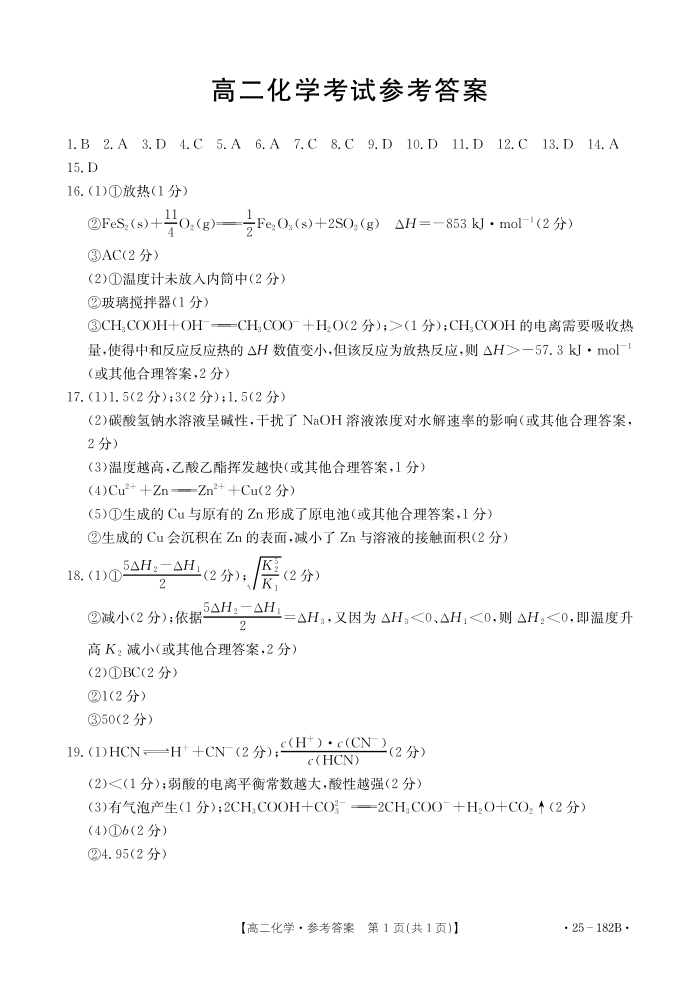 内蒙古赤峰市名校2024-2025学年高二上学期期中联考 化学答案