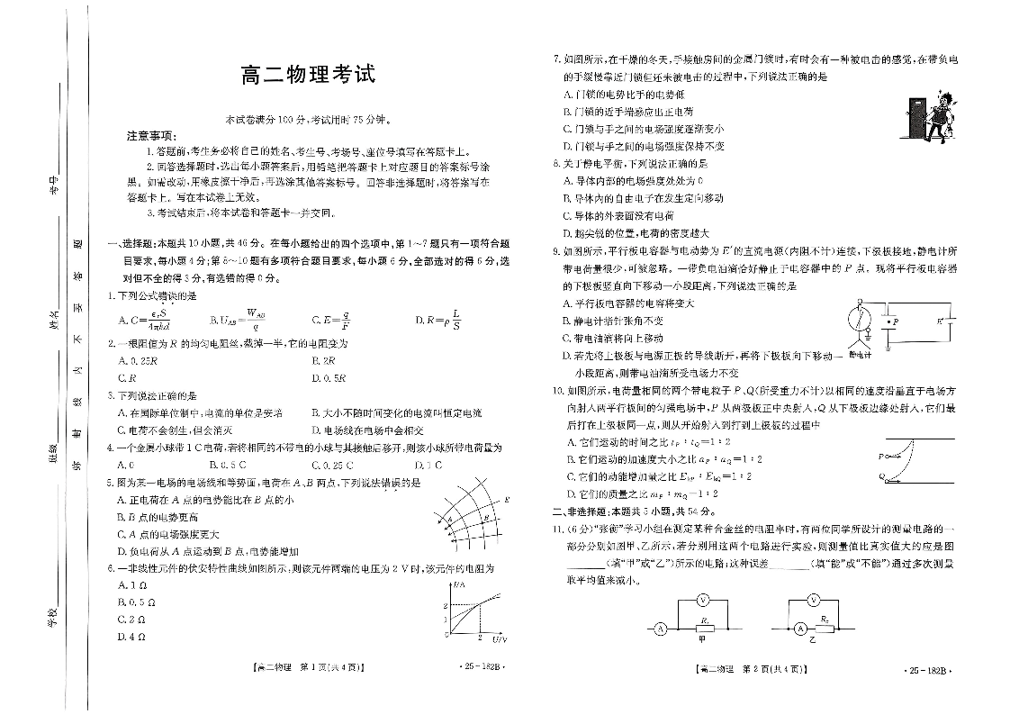 内蒙古赤峰市名校2024-2025学年高二上学期期中联考 物理