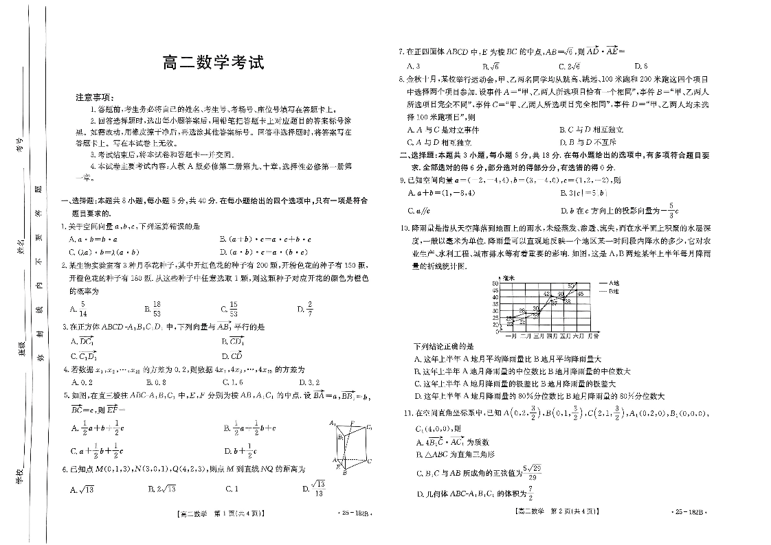 内蒙古赤峰市名校2024-2025学年高二上学期期中联考 数学