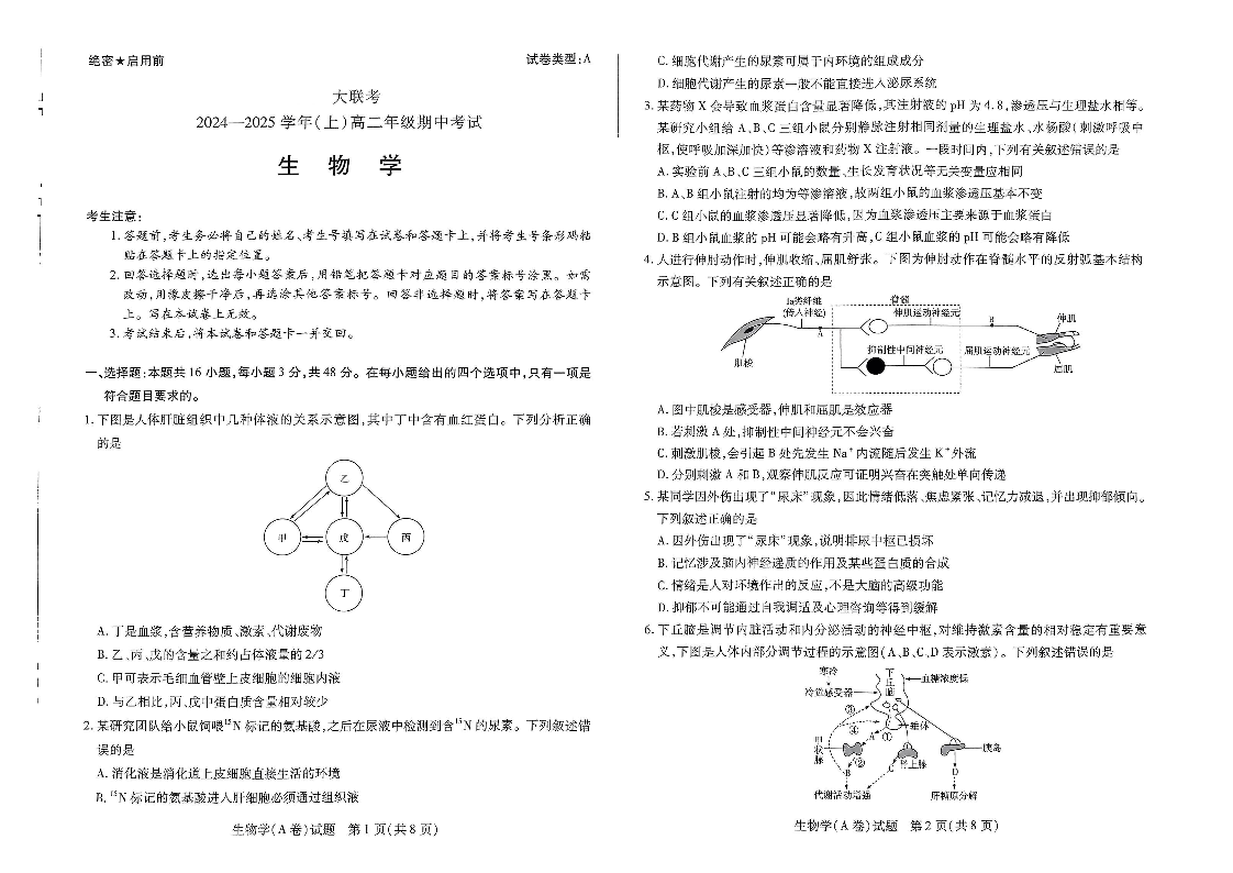 河南省部分学校2024-2025学年高二上学期11月期中考试 生物