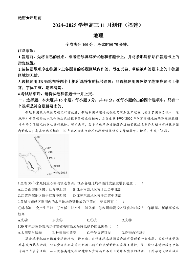 福建省2024-2025学年金科大联考高三11月测评 地理