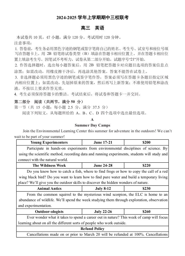 广东省广州外国语、广大附中、铁一中学2024—2025学年高三第一学期期中三校联考 英语