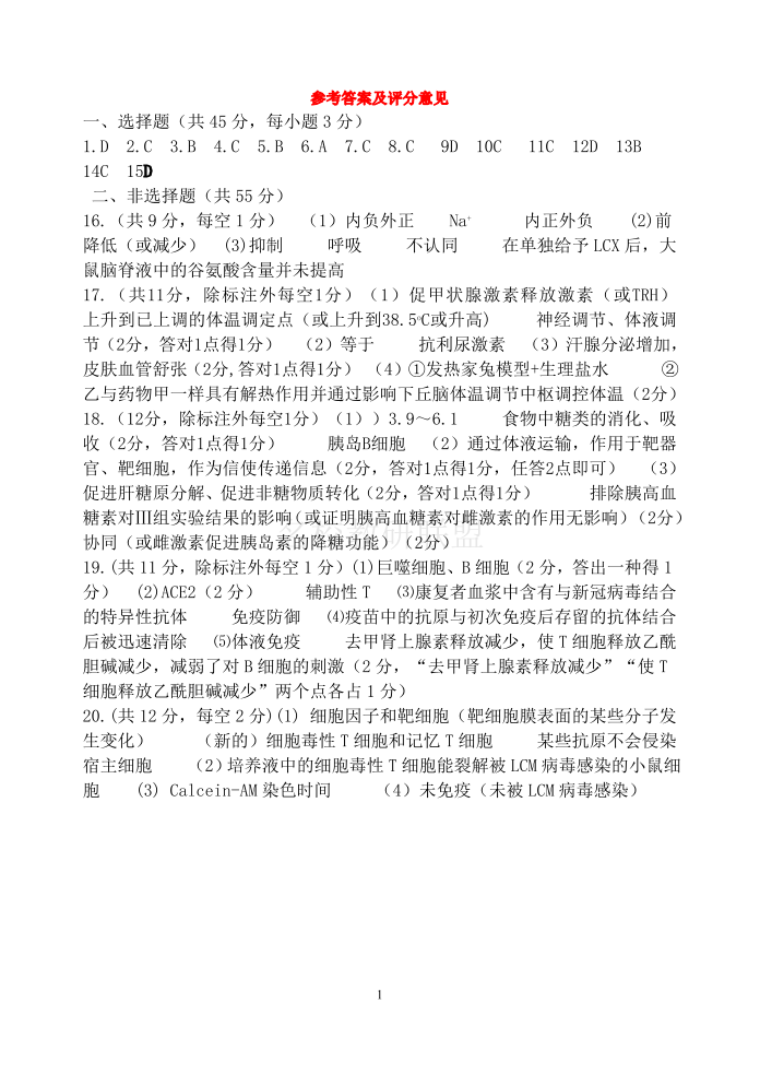 高二生物答案
