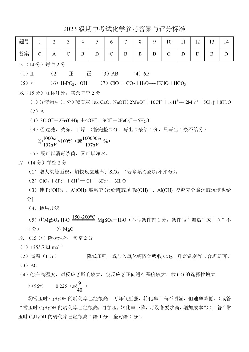 高二化学答案
