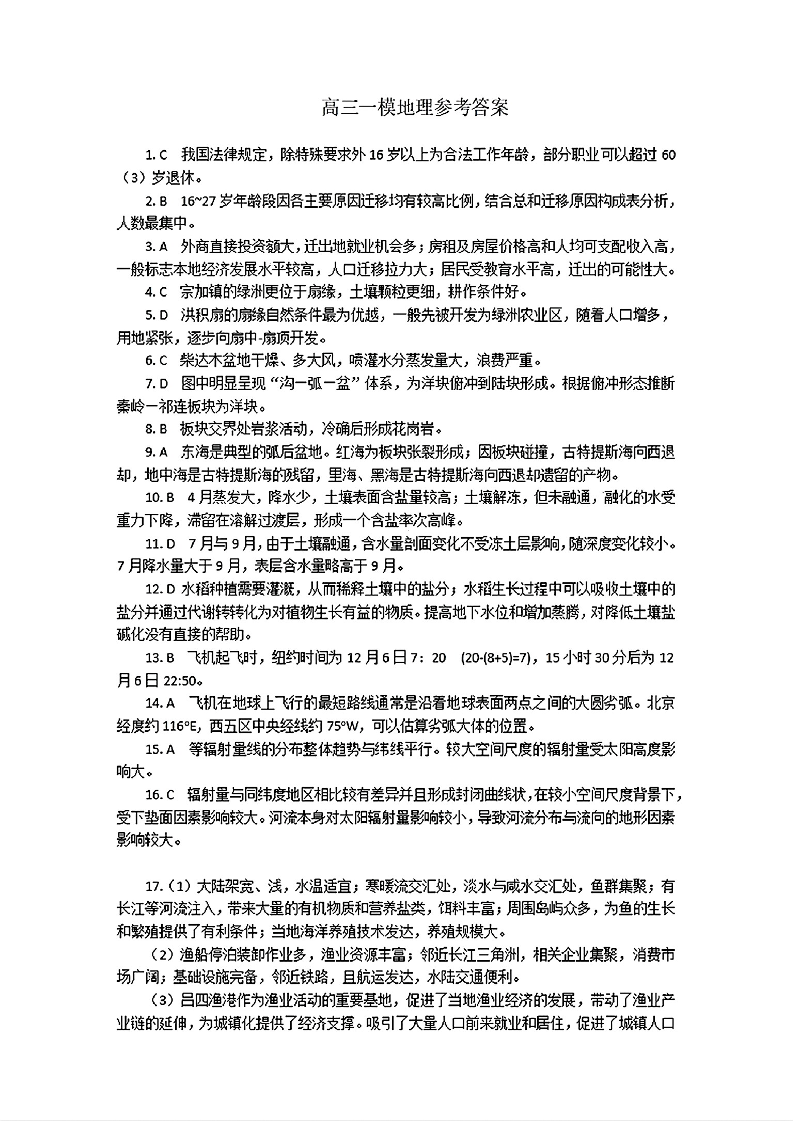 广西壮族自治区柳州市2025届高三第一次模拟考试 地理参考答案