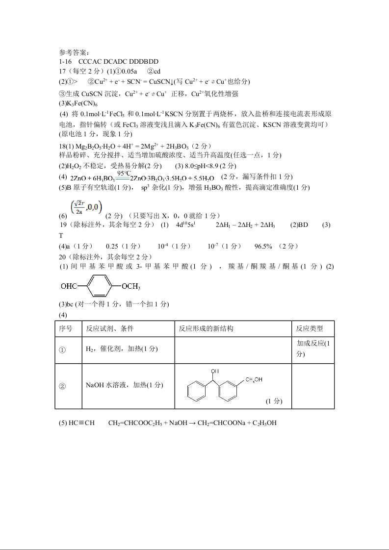 汕头市金山中学2022级高三第一学期期中考试 化学答案