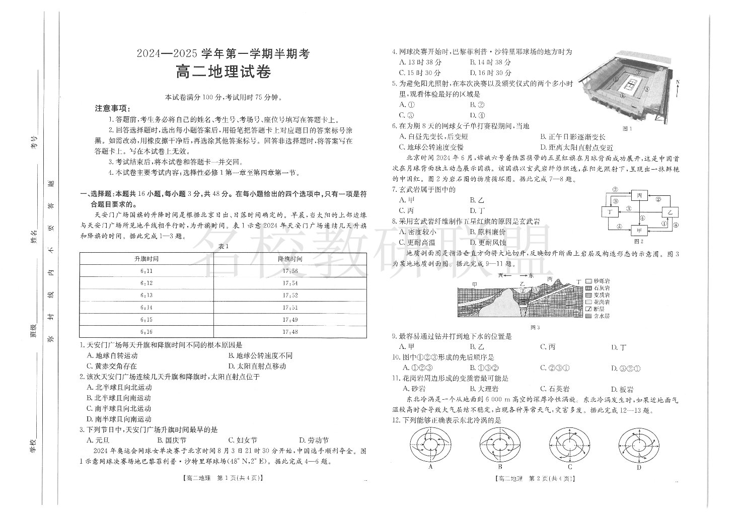 福建省龙岩市非一级达标校2024-2025学年高二上学期期中考试 地理