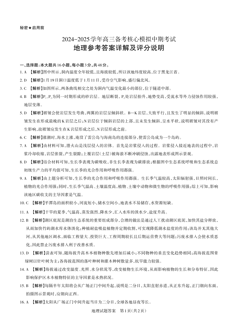 山西省思而行2025届高三备考核心模拟中期考试 地理答案