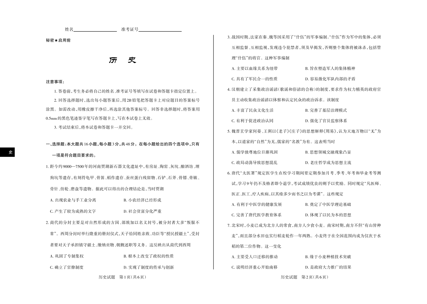 山西省思而行2025届高三备考核心模拟中期考试 历史