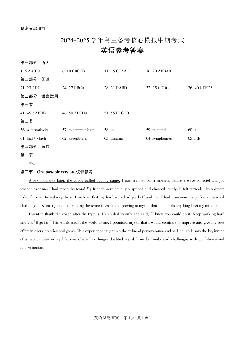 山西省思而行2025届高三备考核心模拟中期考试 英语答案
