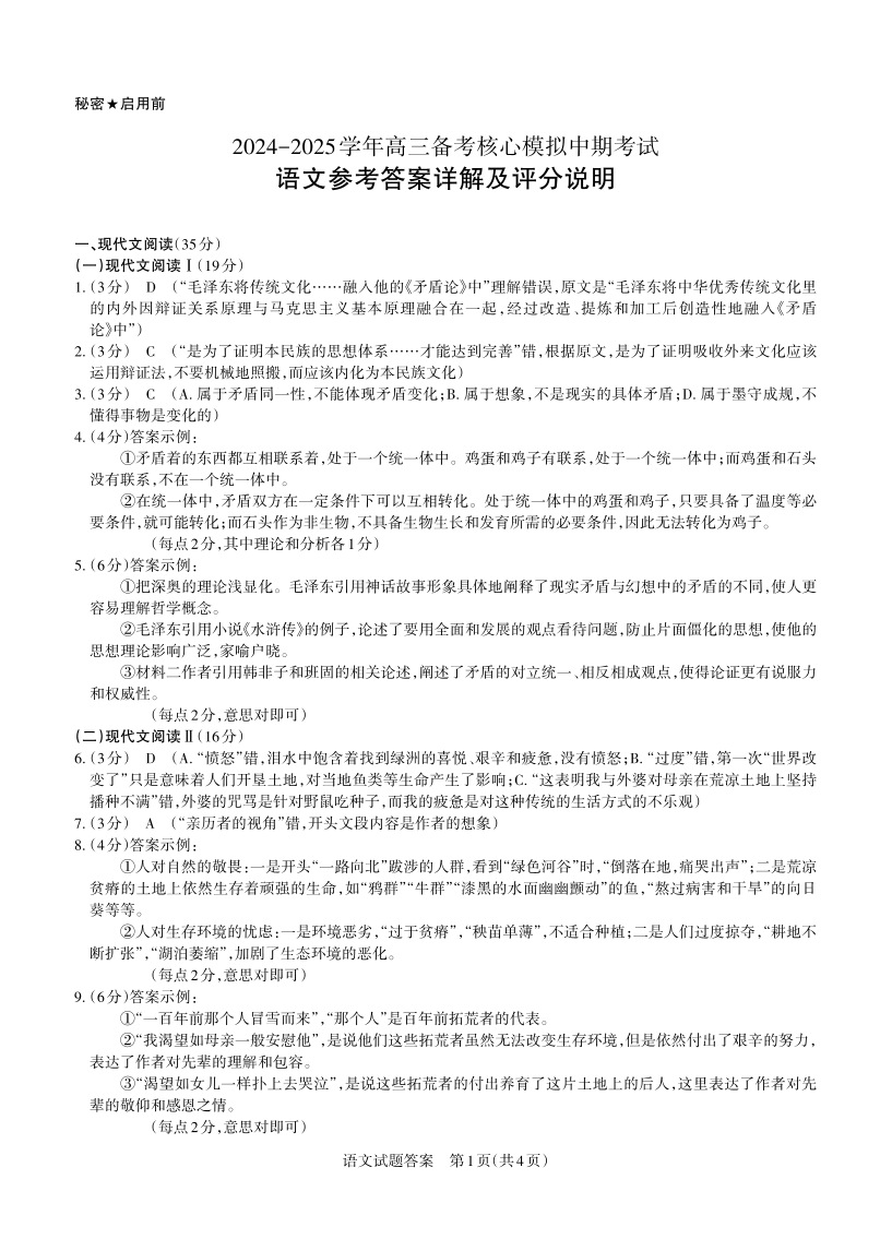 山西省思而行2025届高三备考核心模拟中期考试 语文答案