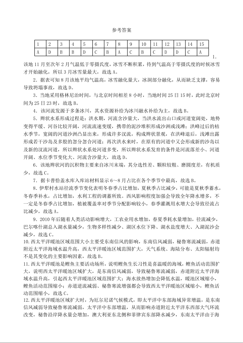 四川省宜宾市2025届高三第一次诊断性考试 地理答案