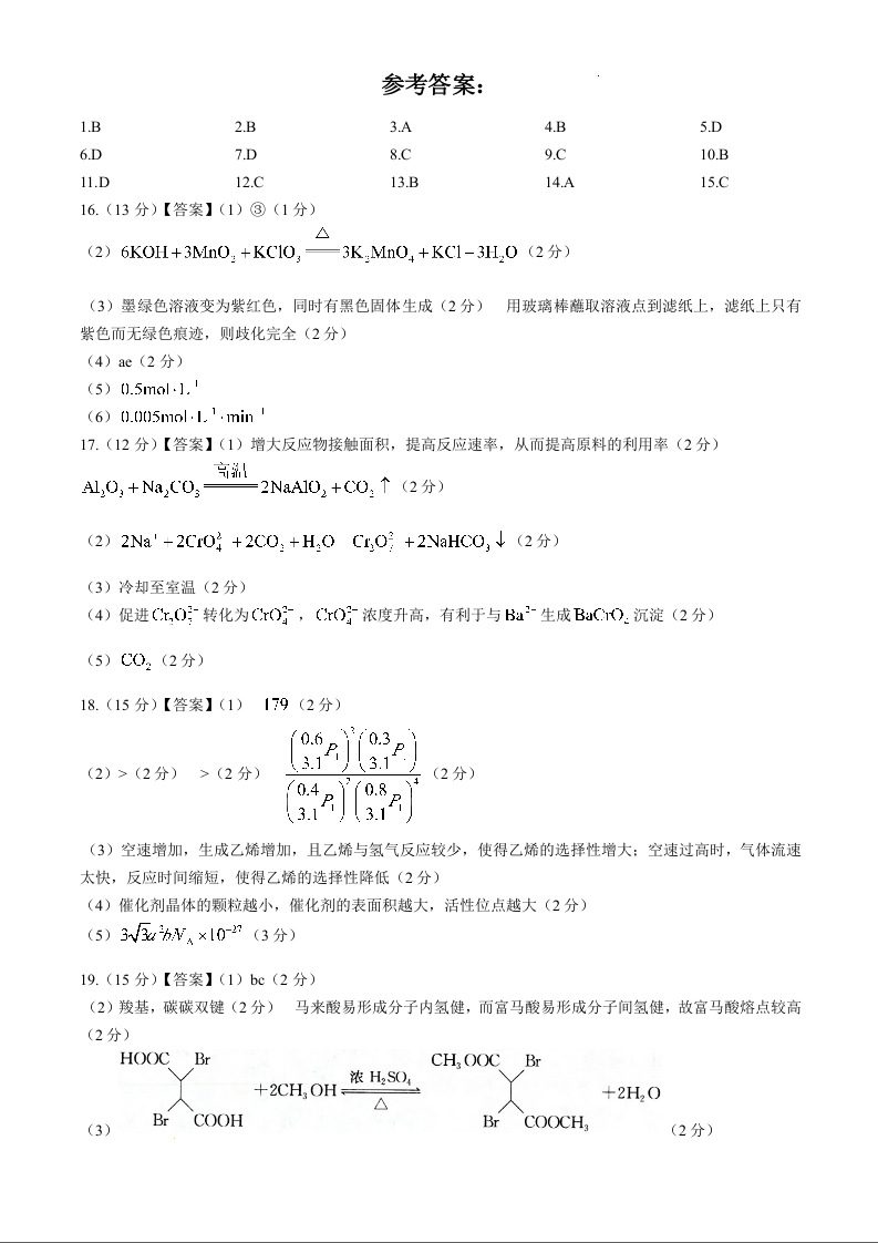 黑龙江省大庆外国语学校2024-2025学年高三上学期期中考试 化学答案