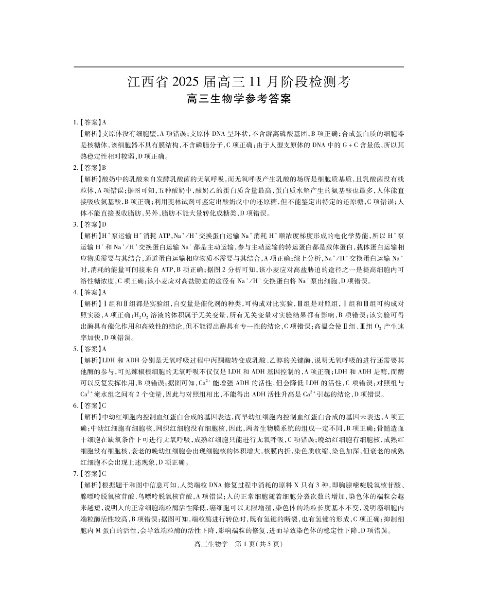 江西省稳派上进联考2025届高三11月阶段检测考 生物答案