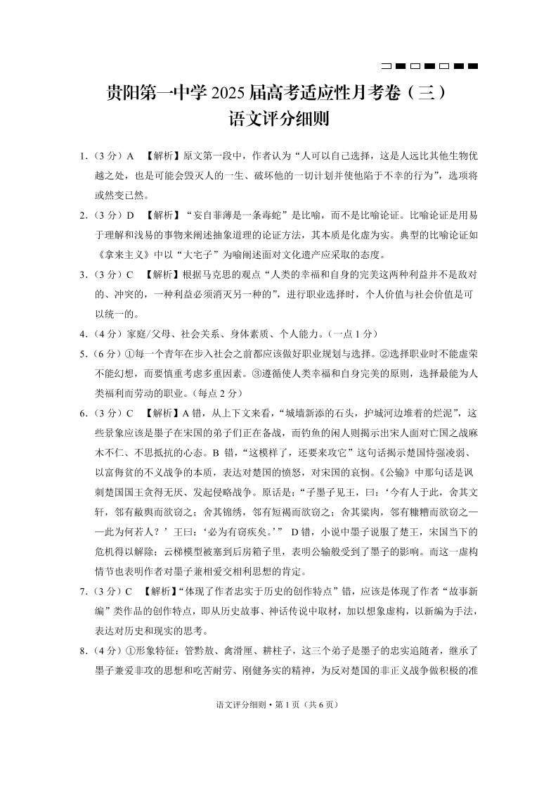 贵阳第一中学2025届高考适应性月考卷(三)语文答案
