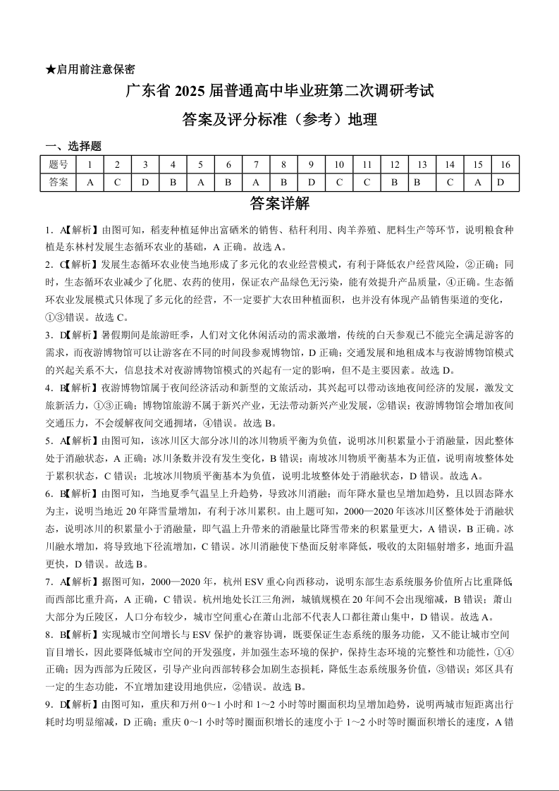 广东省2025届普通高中毕业班第二次调研考试 地理答案