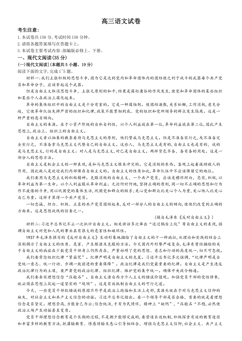 青海省名校联盟2024~2025学年高三上学期期中联考 语文