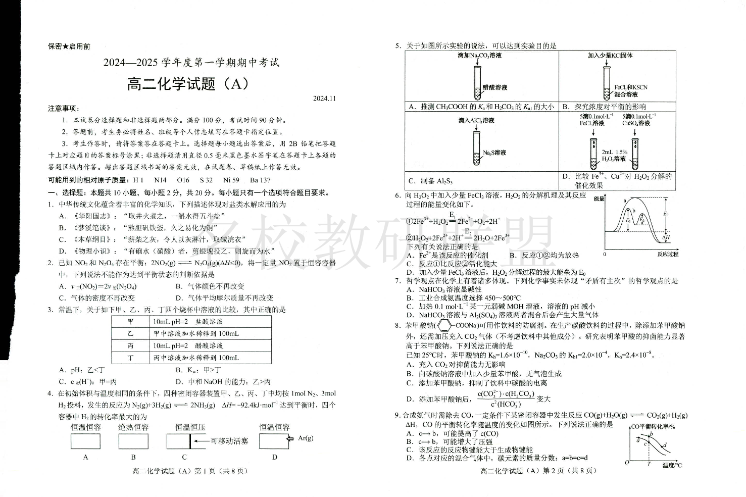 山东省菏泽市2024-2025学年高二上学期期中考试 化学