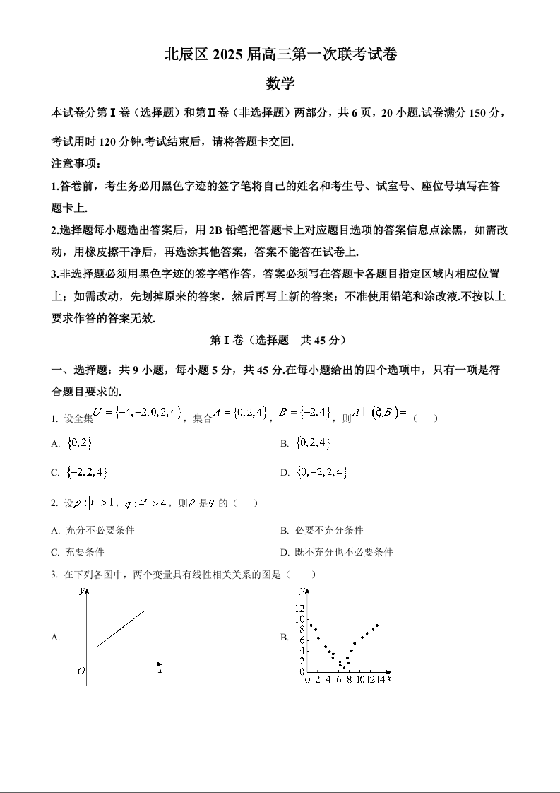 天津市北辰区2024-2025学年高三上学期期中考试 数学
