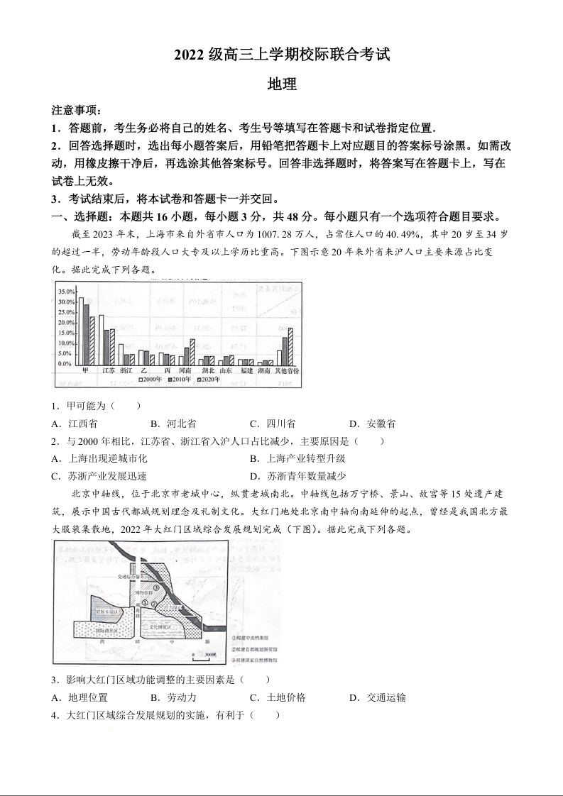 山东省日照市校际联合考试2025届高三上学期11月期中考试 地理
