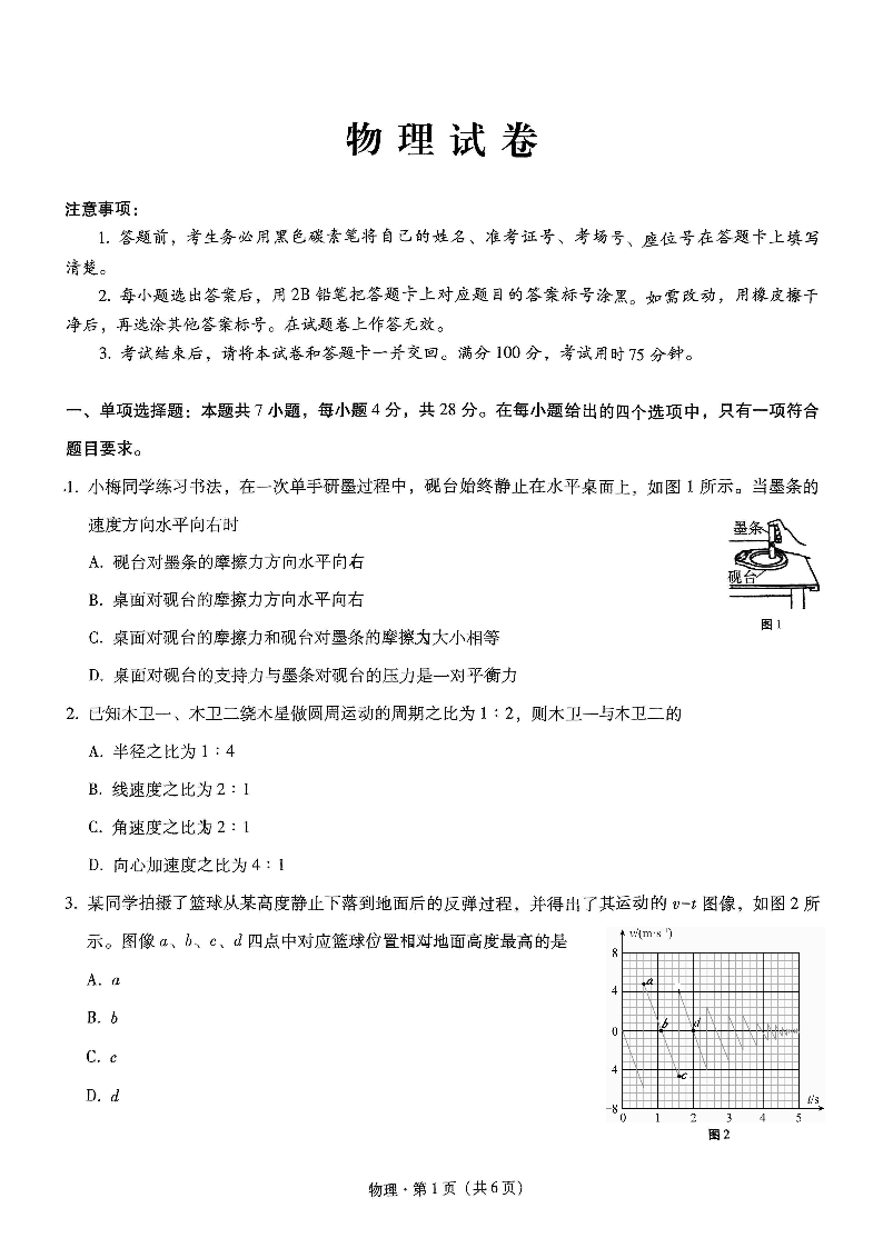 重庆市第八中学校2024-2025学年高三上学期适应性月考(三)物理